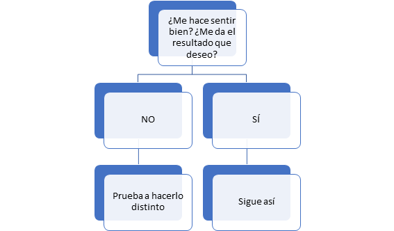 - ELECCIÓN: Me siento mal. Me detengo en este punto y me cuestiono. ¿Por qué hago algo que no me hace sentir bien? Entonces me digo a mí mismo: puedo y tengo el derecho de escoger si quiero realizar esta acción o no.
